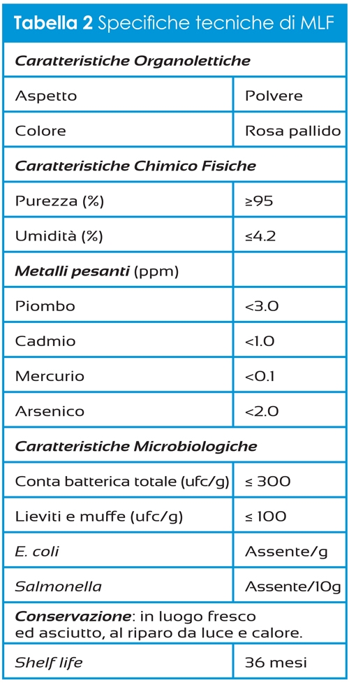 K2 Vital® è un prodotto a base di vitamina K2 ottenuta attraverso un processo sintetico che, rispetto al comune processo fermentativo, garantisce maggiori requisiti in termini di stabilità e purezza, e grazie al quale si ottiene menachinone 7- trans puro. Tale stereoisomeria è molto importante in quanto è l’unica che assicura la corretta interazione con gli enzimi a livello della membrana cellulare, garantendo l’effetto biologico desiderato. Le specifiche tecniche della K2 Vital® Delta, la tipologia di MK-7 indicata per lo sviluppo di integratori, sono riportate in Tabella 1.